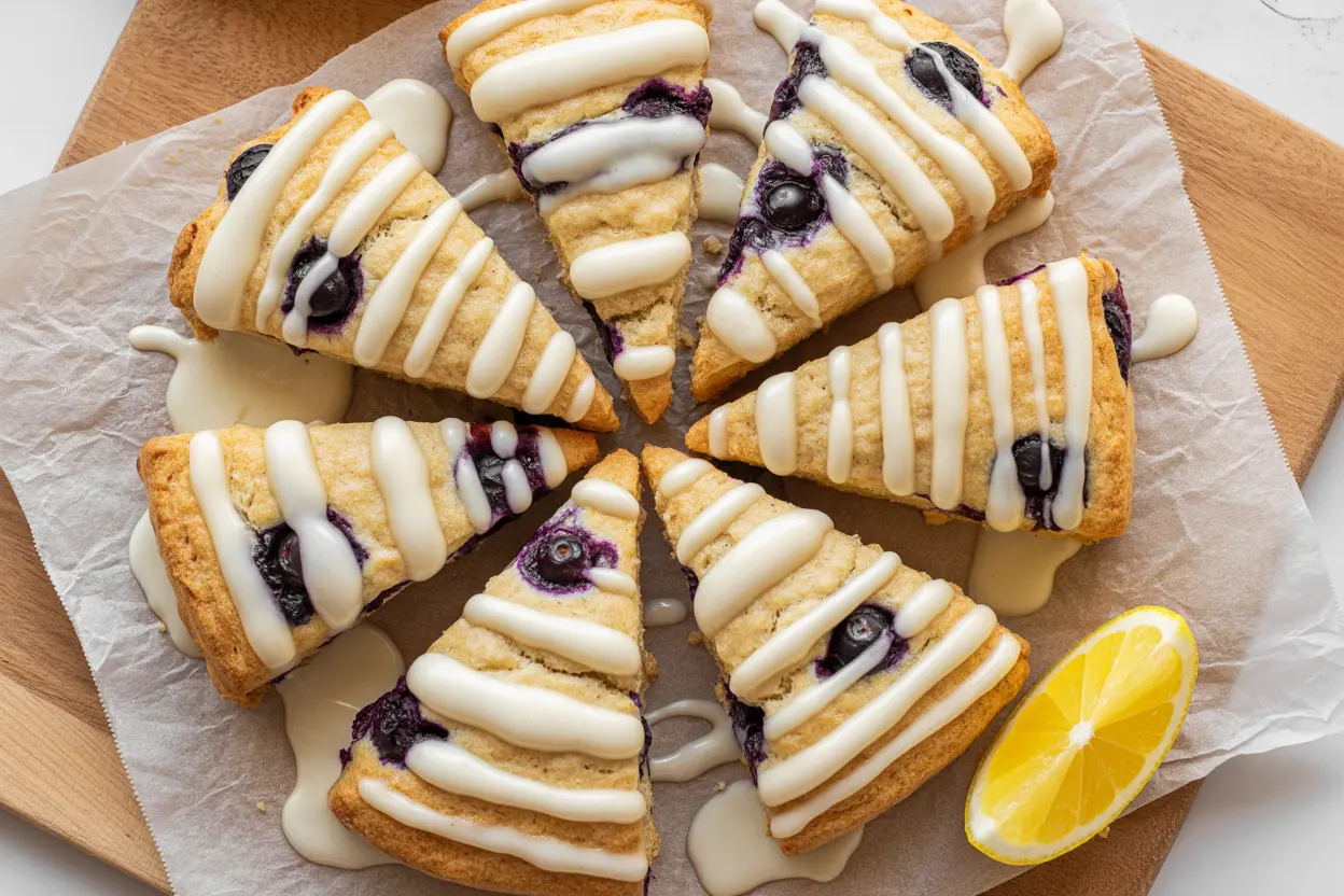 While your scones cool, whisk together a simple glaze: powdered sugar, a splash of lemon juice, and a touch of zest. Drizzle it generously over the warm lemon blueberry sourdough scones so it melts slightly into the crumb, giving a glossy finish and a tangy-sweet kick.